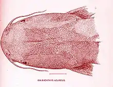 The blue sea catfish (Ariopsis guatemalensis), also known as the widehead sea catfish,[2] is a species of sea catfish in the family Ariidae.[3] It was described by Albert Günther in 1864, originally under the genus Arius.[4] It is found in tropical marine, brackish and freshwater along the Pacific coast in Central America, ranging from Mexico to Panama as well as Nicaragua. It dwells at a depth range of 0 to 20 m (0 to 66 ft). It reaches a maximum total length of 37 cm (15 in).[3]