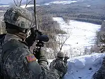 Mountain Rifleman Course: The purpose of the Mountain Rifleman Course is to train snipers and squad designated marksman a combination of mountain specific skills and angle marksmanship fundamentals. The goal is improving mobility and lethality in mountainous terrain. Soldiers are provided with extensive shooting opportunities at both flat and angle ranges. Soldiers are taught basic mountain mobility and navigation skills. The skills are then combined in practical exercises that test a student's ability to plan and execute missions in mountainous terrain. The tasks taught are: mountain travel techniques, cold weather clothing, environmental injuries, soldier load management, characteristics of mountain terrain, basic mountaineering equipment, long range marksmanship in mountainous terrain, map reading in mountainous terrain, terrain exploitation, and land navigation.[5]
