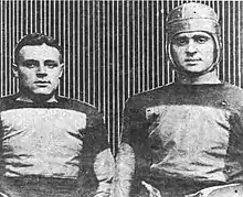 ![]() Arnold Horween (right) with his brother Ralph (left) as members of the Harvard Crimson football team, circa 1919. | |