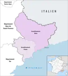 The two arrondissements of the Alpes-Maritimes department are:[1]