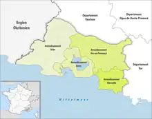 The four arrondissements of the Bouches-du-Rhône department are:[1]