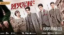 Arsenal Military Academy (Chinese: 烈火军校; pinyin: Lièhuǒ Jūnxiào), starring Bai Lu, Xu Kai, Li Chengbin and Wu Jiayi in main roles.[1] It is a 2019 Chinese streaming television series, directed by Hue Kaidong. The series tells the story of Xie Xiang, who disguises herself as a male student under her brother's name to join the military academy .[2][3][4][5]