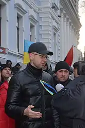 Arseniy Petrovych Yatsenyuk (Ukrainian: Арсеній Петрович Яценюк [ɐrˈsɛn⁽ʲ⁾ij peˈtrɔwɪtʃ jɐtseˈnʲuk]; born 22 May 1974) is a Ukrainian politician, economist and lawyer who served as Prime Minister of Ukraine twice – from 27 February 2014 to 27 November 2014 and from 27 November 2014 to 14 April 2016.[1]