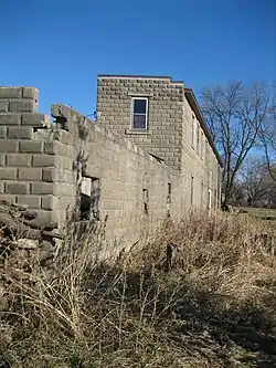 The stone block triangular building, near railroad tracks crossing through Esmond, was constructed in 1925. For the first several years of its history it served as a meeting place for the DeKalb County chapter of the South Grove Grange. The grange met there for a few years until they moved their meetings to the Creston Town Hall in Ogle County in 1933.[3]