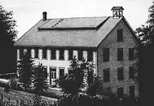 In 1851, gold was discovered at Rich Gulch, a tributary of Jackson Creek, and a tent city grew on its banks, today's Jacksonville.[6] Settlers arrived in the Ashland area in January 1852, including Robert B. Hargadine, Sylvester Pease, Abel D. Helman, Eber Emery, and others.[7] Helman and Hargadine filed the first donation land claims in Ashland.[7] Helman and Emery built a sawmill along what was then called Mill Creek to turn timber into lumber for settlers.[7] In 1854, they and another settler, M. B. Morris, built a second mill, Ashland Flouring Mills, to grind local wheat into flour. The community around the mill became known as "Ashland Mills". A post office was established in Ashland Mills in 1855 with Helman as postmaster.[7]