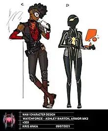 Receiving a generally positive critical reception, the character was adapted to the 2021 radio drama podcast series Marvel's Wastelanders as Ash Morse / King Zemo, voiced by Sasha Lane, and made her cinematic debut in the 2023 feature film Spider-Man: Across the Spider-Verse, referred to as Ashley / Spider-Kingpin, a member of Miguel O'Hara's Spider-Society.[3][4]