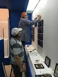 There are photographs of Armenian and foreign celebrities, who valued Jivani or are closely connected with the ashough in their life and work. The performers who sung or played Ashough’s music are also included in the exhibition. The exhibition ends with photographs of Jivani’s tombstone and the pictures of ashough school (founded in Yerevan, 1997), streets and monuments.[2]