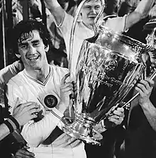 To the surprise of commentators and fans, Ron Saunders quit halfway through the 1981–82 season, with Villa in the quarter final of the European Cup. Saunders had expressed his exasperation with the board at the lack of funds available to him to strengthen the team and fell out with the chairman Ron Bendall over the terms of his contract.[41] He was replaced by his softly-spoken assistant manager Tony Barton who guided the club to a 1–0 victory over Bayern Munich in the European Cup final in Rotterdam courtesy of a Peter Withe goal in the 67th minute. Ten minutes into the final, Villa's first choice goalkeeper, Jimmy Rimmer, was injured and young substitute keeper Nigel Spink was called into action, having only made one previous appearance in the first team. Spink performed superbly, keeping a clean sheet, and helping Villa become only the fourth English club to lift the European Cup.