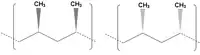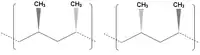Isotactic polymers are composed of isotactic macromolecules (IUPAC definition).[6] In isotactic macromolecules all the substituents are located on the same side of the macromolecular backbone. An isotactic macromolecule consists of 100% meso diads. Polypropylene formed by Ziegler–Natta catalysis is an isotactic polymer.[7] Isotactic polymers are usually semicrystalline and often form a helix configuration.