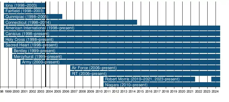 2013–142014 Mercyhurst (1)Robert Morris (1)Final AHA season for Connecticut, (leaving for Hockey East)