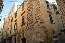 The Auberge d'Italie (Maltese: Berġa tal-Italja, Italian: Albergo d'Italia) is an auberge in Valletta, Malta.[1] It was built at various stages in the late 16th century to house knights of the Order of Saint John from the langue of Italy, and it originally had a Mannerist design by Girolamo Cassar and several other architects. The building continued to be modified throughout the course of the 17th century, with the last major renovation being carried out in the 1680s during the magistracy of Gregorio Carafa, giving the building a Baroque character.[2]