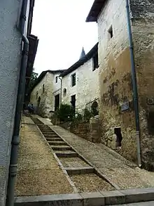 In 1366, Aubeterre was one of nine castellanies in the Seneschal of Angoumois which was held by the English Seneschal Henri de la Haye.[17][Note 2] Between 1356 and 1412 the lordship of Aubeterre changed hands seven times between the English and the French. Gardrad Raymond, lord of Aubeterre, was a great recruiter and headed bands of Anglo-Gascons before being engaged by Bertrand Du Guesclin to go to war with Spain in 1366.[18]