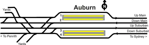 Auburn railway station is located on the Main Suburban line, serving the Sydney suburb of Auburn. It is served by Sydney Trains T1 Western and T2 Inner West & Leppington line services. The station serves one of the most multi-culturally diverse suburbs in the city.