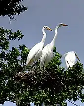 Trio of great egrets at Ochsner Island Rookery in Audubon Park.