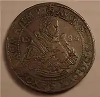 The first care of the new elector was to come to terms with John Frederick, and to strengthen his own hold upon the electoral position. This object was secured by a treaty made at Naumburg in February 1554, when, in return for the grant of Altenburg and other lands, John Frederick recognized Augustus as elector of Saxony. The elector, however, was continually haunted by the fear that the Ernestines would attempt to deprive him of the coveted dignity, and his policy both in Saxony and the wider Holy Roman Empire was coloured by this fear. In imperial politics Augustus acted upon two main principles: to cultivate the friendship of the Habsburgs, and to maintain peace between the contending religious parties. To this policy may be traced his share in bringing about the religious Peace of Augsburg treaty in 1555, his tortuous conduct at the diet of Augsburg eleven years later, and his reluctance to break entirely with the Calvinists.[3] His policy of religious peace was also promoted by the marriage he negotiated between his niece Anna and the then-Catholic Prince of Orange, at the time one of the chief Habsburg vassals in the Netherlands, in 1561. On one occasion only did he waver in his allegiance to the Habsburgs. In 1568 a marriage was arranged between Johann Casimir, son of Frederick III, Elector Palatine, and Elisabeth, Augustus' own daughter. For a time it seemed possible that the Saxon elector would support his son-in-law in his attempts to aid the revolting inhabitants of the Spanish Netherlands. Augustus also entered into communication with the Huguenots; however, his aversion to foreign complications prevailed, and the incipient friendship with the elector Palatine soon gave way to serious dislike. Although a sturdy Lutheran, the elector hoped at one time to unite the Protestants. He continually urged them to consider the necessity of giving no cause of offence to their opponents, and he favoured the movement to get rid of the clause in the Peace of Augsburg concerning ecclesiastical reservation, which was offensive to many Protestants. His moderation, however, prevented him from joining those who were prepared to take strong measures to attain this end, and he refused to jeopardize the concessions already won.[3]