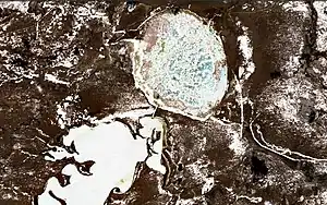 Auliekol (Kazakh: Әулиекөл) is a lake in the Ekibastuz City Administration, Pavlodar Region, Kazakhstan.[1] It lies 2 kilometers (1.2 mi) to the southeast of Karazhar village, 50 kilometers (31 mi) northwest of Ekibastuz and 120 kilometers (75 mi) to the west of Pavlodar. The name "Auliekol" means holy lake in Kazakh.[2][3][4]