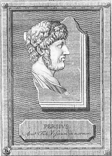Aulus Persius Flaccus (/ˈpɜːrʃiəs, ˈpɜːrʃəs/; 4 December 34 – 24 November 62 AD) was a Roman poet and satirist of Etruscan origin. In his works, poems and satires, he shows a Stoic wisdom and a strong criticism for what he considered to be the stylistic abuses of his poetic contemporaries. His works, which became very popular in the Middle Ages, were published after his death by his friend and mentor, the Stoic philosopher Lucius Annaeus Cornutus.