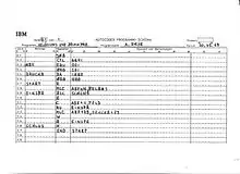 The first Autocoders were released in 1955 for the IBM 702,[4] and in 1956 for the almost compatible IBM 705.[5] They were designed by Roy Goldfinger who earlier had worked on New York University's (NYU) NYAP assembler.[6][7] These machines were variable word length commercial machines, as were many of the computers for which an Autocoder was released.