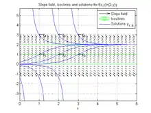 The equation is autonomous, since the independent variable () does not explicitly appear in the equation. To plot the slope field and isocline for this equation, one can use the following code in GNU Octave/MATLAB