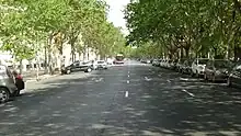 Originally envisioned as a jardin street under the name of "camino-paseo hasta el mar" the project was approved by law on 1 August 1893. The aim of the street was to link the Jardines del Real in the west to the Poblats Marítims in the east of the city. A first design was made by Casimiro Meseguer who intended to make the street part of a green city plan he called "Ciudad Jardín". Meseguer finished his plan in 1895.[1] It was made with the bourgeoisie in mind, with villas for the rich directly on the avenue and less expensive houses behind it. Meseguer's design gave the street a width of 100 meters and included three large plazas with a diameter of 200 meters. A central part of the street would be a 60-meter wide landscaped stretch, streets ending on the camino would have a width of 20 meters.[2]