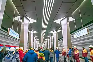 In July 2016, the Lefortovo market was cleared in order to begin construction on the station.[4] Construction on the north lobby began in February 2017.[5] Tunneling began in September 2017 starting with the left tunnel, followed by the right tunnel in October of that year.[6][7]