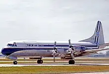 During the 1940s and 1950s, the airline began to acquire larger piston engine airliners including the Douglas DC-3 and the Douglas DC-4. The Vickers Viscount turboprop passenger airliner followed in order to expand its route network around the Americas.