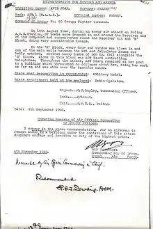 - "Recommendation for honours or awards" (Document). RAF. September 1940.