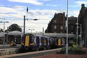 ![]() Ayr railway station, with Abellio ScotRail Class 380s in the bay platforms | |
