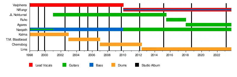 - Narqath - Guitar, bass, vocals, keyboard (ex-Calm (Fin), ex-Decay's Delight, Finnugor, ex-Hellkult, ex-Hin Onde, ex-Necromortum, ex-Oath of Cirion, ex-Svartalfheim (Fin), Svartkraft, ex-Thoronath, ex-Valar, Vultyr, Weltraum, With Hate I Burn, Wyrd)