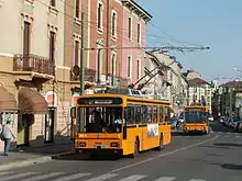 Azienda Trasporti Milanesi S.p.A. ("Milanese Transports Company, S.A."; ATM) is the municipal public transport company of Milan and 46 surrounding metropolitan municipalities.[4] It operates 5 metro lines (see Milan Metro), 17 tram lines (see Trams in Milan), 124 bus lines and 4 trolleybus lines (see Trolleybuses in Milan), carrying about 776 million passengers in 2018.[5]