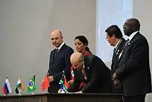 In August 2019, the communications ministers of the BRICS countries signed a letter of intent to cooperate in the Information and Communication Technology sector. This agreement was signed in the fifth edition of meeting of communication ministers of countries member of the group[43] held in Brasília, Brazil.