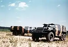 By the end of the war, the initial Soviet tactic of tank desant, in which the infantry rode into battle atop the tanks they were supporting, had been superseded by the introduction of M3 Half-tracks and M3 White armored cars.[13] These were widely used for troop transport, giving rise to a new doctrine in which armored vehicles capable of keeping pace with tanks brought infantry to an engagement. The infantrymen would then disembark and enter combat on foot.[14]