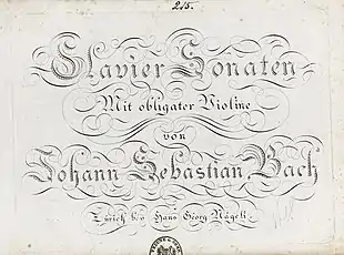 Title page of first printed edition of the sonatas published by the Swiss musicologist Hans Georg Nägeli in Zurich in the early 1800s.