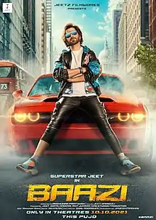 Baazi (transl. Challenge) is a 2021 Indian Bengali-language action thriller film directed by Anshuman Pratyush and produced by Jeet, Gopal Madnani and Amit Jumrani under the banner of Jeetz Filmworks Pvt. Ltd. It stars Jeet and Mimi Chakraborty and is an official remake of the Telugu film Nannaku Prematho (2016). The film was shot in London and the shoot was wrapped up in October 2020.[1] It revolves around a man (Jeet), who vows to take revenge in order to give his father (Abhishek Chatterjee) a new life.[2] The film was to release on 14 May 2021, but got postponed due to COVID-19 pandemic aftermath.[3] It was released on 10 October 2021 coinciding with Puja holidays.