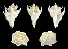 | Five views of a shell of Babelomurex japonicus | |