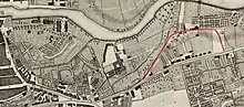 In 1480, the Bernardine Monastery was erected to the east of the castle. A wall-fenced garden was arranged east of this monastery, surrounded by a dyke, which was supported by drainage ditches to protect it against flooding.[4] A manor inn and two houses were built there in 1744.[5] During the Prussian period (1772–1918) and the WWII occupation of Poland, the street bore the name of Schiffer Straße.[6]