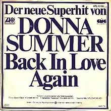 "Back in Love Again" is a song by American singer and songwriter Donna Summer from her I Remember Yesterday album. Summer combines her trademark disco beats with a 1960s sound on this track. The song is actually a re-working of a track called "Something's in the Wind", which was a B-side to "Denver Dream", a single released by Summer in The Netherlands and Belgium in 1974. The song peaked at #29 on the UK singles chart.[1]