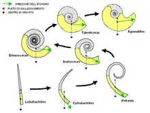 | Diagram showing evolution of Bactritida to Ammonoidea | |