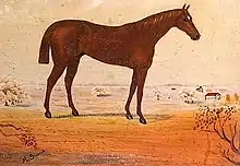 Baden-Baden (foaled 1874 in Kentucky) was an American Thoroughbred racehorse best known for winning the 1877 Kentucky Derby. He was bred by A. J. Alexander at his Woodburn Stud in Woodford County, Kentucky. Baden-Baden was sired by Australian (GB) (who in turn was sired by West Australian, first horse to win the English Triple Crown in 1853); his dam, Lavender, was sired by Wagner.[1] He was purchased at Woodburn's yearling sale by Kentucky horseman Daniel Swigert, from Elmendorf Farm.