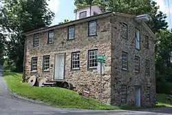 Bahr Mill Complex is a historic grist mill complex located in Colebrookdale Township, Berks County, Pennsylvania. The complex includes the 2-story, plus basement, banked stone mill (1897); 2 2/2-story, stucco over stone farmhouse (c. 1820); 1-story, brick smokehouse (c. 1820); banked frame sawmill with a stone foundation (c. 1820); 2-story, stucco over stone store (c. 1820); two sheds (c. 1890); a shoemaker's shop (c. 1890); outhouse (c. 1920); stone bank barn (rebuilt c. 1880); and frame garage (c. 1930). Also on the property are a contributing chicken house (c. 1850) and pig sty (c. 1890). It is a family-run mill complex, run by the Gable family for over 175 years.[2]