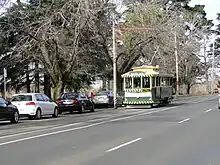 - Number 14: built in 1915 for the Prahran & Malvern Tramways Trust, this was a J class, single truck, open California combination car and numbered PMTT-75.[10] It was renumbered by the MMTB in 1919 as J75. It was sold to Geelong in 1928 and became Geelong Tram No.29. The SECV moved the tram to Ballarat in 1936 and it became No.14. This tram is owned by the City of Ballarat.[12]