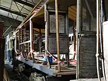- Number 21: built in 1913 in Ballarat for Electric Supply Company of Victoria. The style was known as the "Sebastopol" tram. Sold in 1935 for use in a house near Daylesford, and returned to Ballarat in 1994.[14] This tram is in poor condition and suitable only for parts. It is currently in storage offsite.