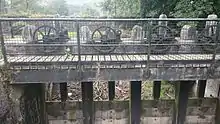 After the Napoleonic Wars, the demand for gunpowder fell dramatically and the mills were closed in 1815.[8] The Duke of Wellington ordered "The whole of the wooden part of the manufactory to be taken down (and) the foundations to be preserved". The machinery was oiled, painted and maintained. Some of the equipment was put up for auction in 1831 and soon many of the buildings were in dilapidated state.