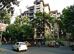 It is surrounded by nice residential houses in the vicinity of Tripura House, mainly in the stretch between the Science College and St. Lawrence High School. Some of the finest residential apartments as well as posh villas dot this road. Many prominent residential spots like "Vedant Apartments", on the plot that used to house legendary Bengali actress Suchitra Sen’s bungalow, have sprung up recently. "Devadwar" at 34 Ballygunge Circular Road is considered to be one of the best residential buildings in the city. Other notable plush high rise apartments include "Paramount", "Uttarayan", "Aishwarya" ,"Le Palmerie", "The Residency", "Tripura Enclave", "Surya", "Balaka", "Tivoli Court" and the upcoming Sky villas "Shiromani" and "Sri Avani". Ballygunge Circular Road is surrounded by other upscale and posh areas of Ballygunge like Gurusaday Dutta Road, Rainey Park, Rowland Road, Lovelock Street, Ritchie Road, Dover Road, Dover Park, and Queens Park. There are other landmarks such as the Max Mueller Bhavan (Goethe Institute), (which has now shifted to Park Mansions) "Miranda Hall" — one of the most exclusive Montessori schools in Kolkata was also situated on this road.