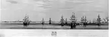 The Baltic Fleet comprised a series of temporary fleets assembled for various naval campaigns of the Royal Navy from 1658 to 1854 under the command of a Commander-in-Chief, Baltic Fleet. The fleet operated from a number of bases including Spithead in Hampshire but also the Nore.[2] During the Crimean War of 1853–1856, the final Baltic Fleet was the largest assembled since the Napoleonic Wars, and in terms of armament the most powerful naval force the Royal Navy possessed in the mid-19th century.[3] Pictured right is the fleet sailing from Spithead on 11 March 1854.