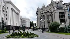 Bankova Street (Ukrainian: вулиця Банкова, vulytsia Bankova) is a street in central Kyiv, the capital of Ukraine, located in the Lypky neighborhood of the Pechersk District. Most of the street is pedestrianised and closed-off, as it houses the Presidential Office of Ukraine and various official residences, notably the House with Chimaeras.