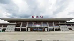 Baoshan railway station (Chinese: 保山站; pinyin: Bǎoshān zhàn) is a railway station in Longyang District, Baoshan, Yunnan, China. It is an intermediate stop on the Dali–Ruili railway. The station opened on 22 July 2022.[1][2]