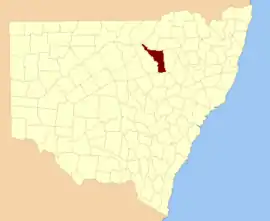 Baradine County is one of the 141 Cadastral divisions of New South Wales. It is bounded in the north by the Namoi River, and includes the land south to Coonabarabran, which is on its southern edge. This includes land on both sides of the Baradine Creek and the town of Baradine.