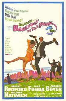 Barefoot in the Park is a 1967 American romantic comedy film directed by Gene Saks from a screenplay by Neil Simon, adapted from his 1963 play of the same name,[1] starring Robert Redford and Jane Fonda as a young newlywed couple. Paul, a conservative lawyer, marries the vivacious Corie, but their highly passionate relationship descends into comical discord in a five-flight New York City walk-up apartment. The supporting cast features Charles Boyer, Mildred Natwick, Herbert Edelman, and Mabel Albertson.
