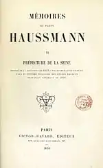 - (in French) Baron Haussmann, Mémoires, trois tomes publiés en 1890 et 1893. Nouvelle édition établie par Françoise Choay, Seuil, 2000. See also l'exemplaire de Gallica.